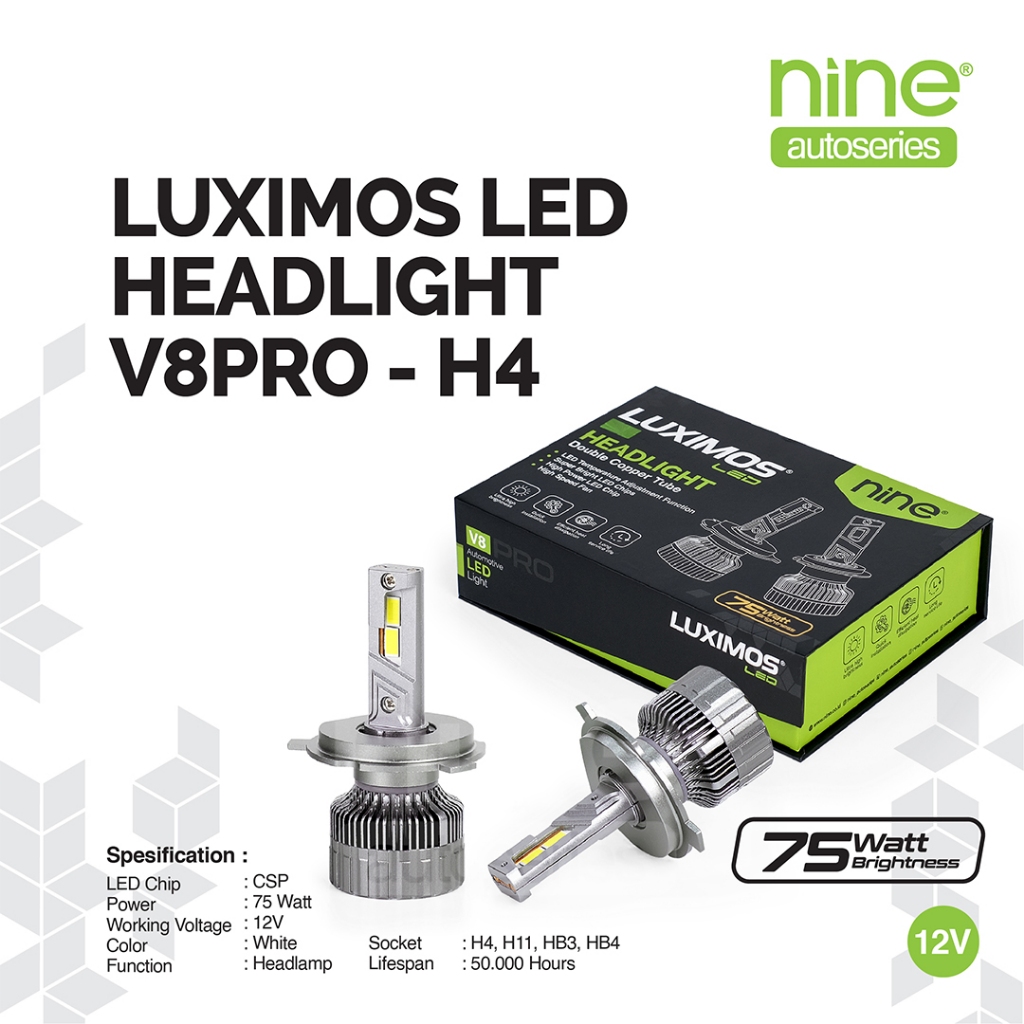LUXIMOS Lampu Utama Mobil 75W H4 H11 H7 HB3 HB4 Super Terang Foglamp Putih V8PRO - NINE AUTOSERIES