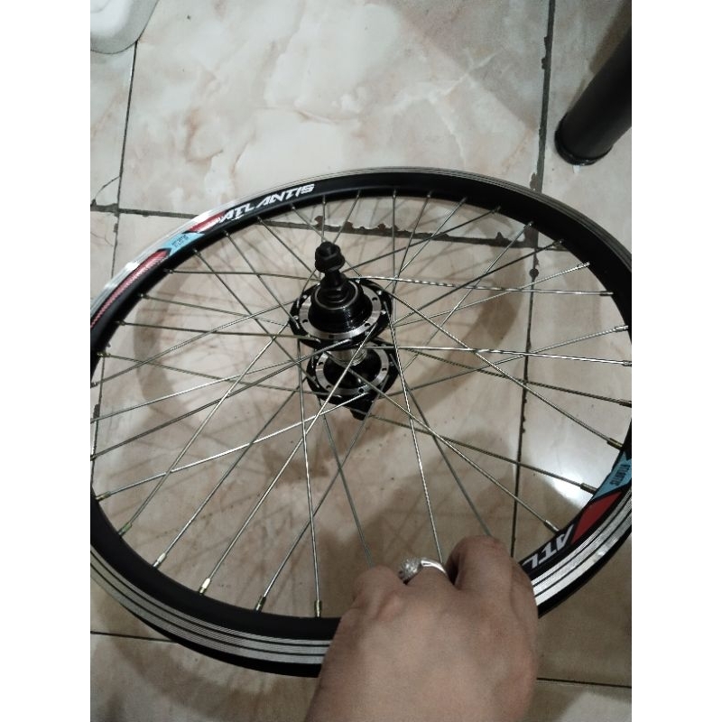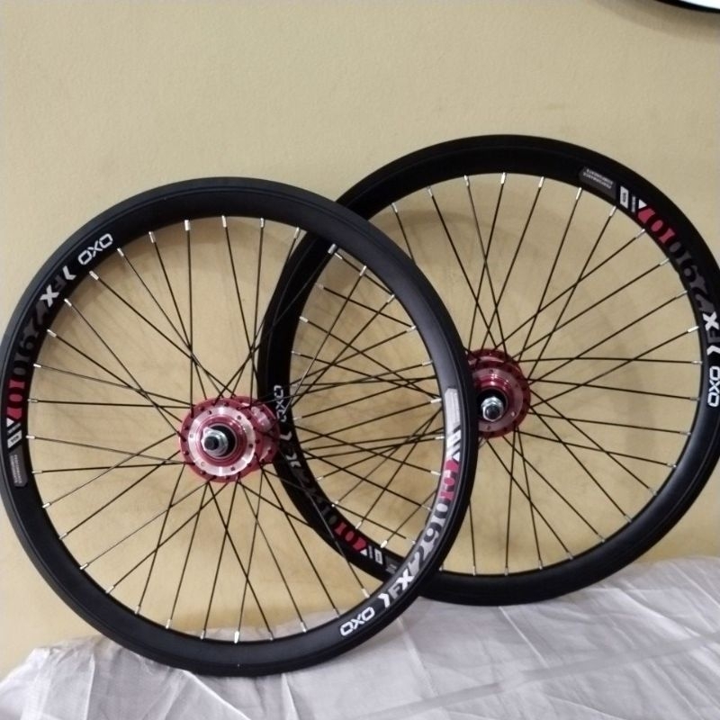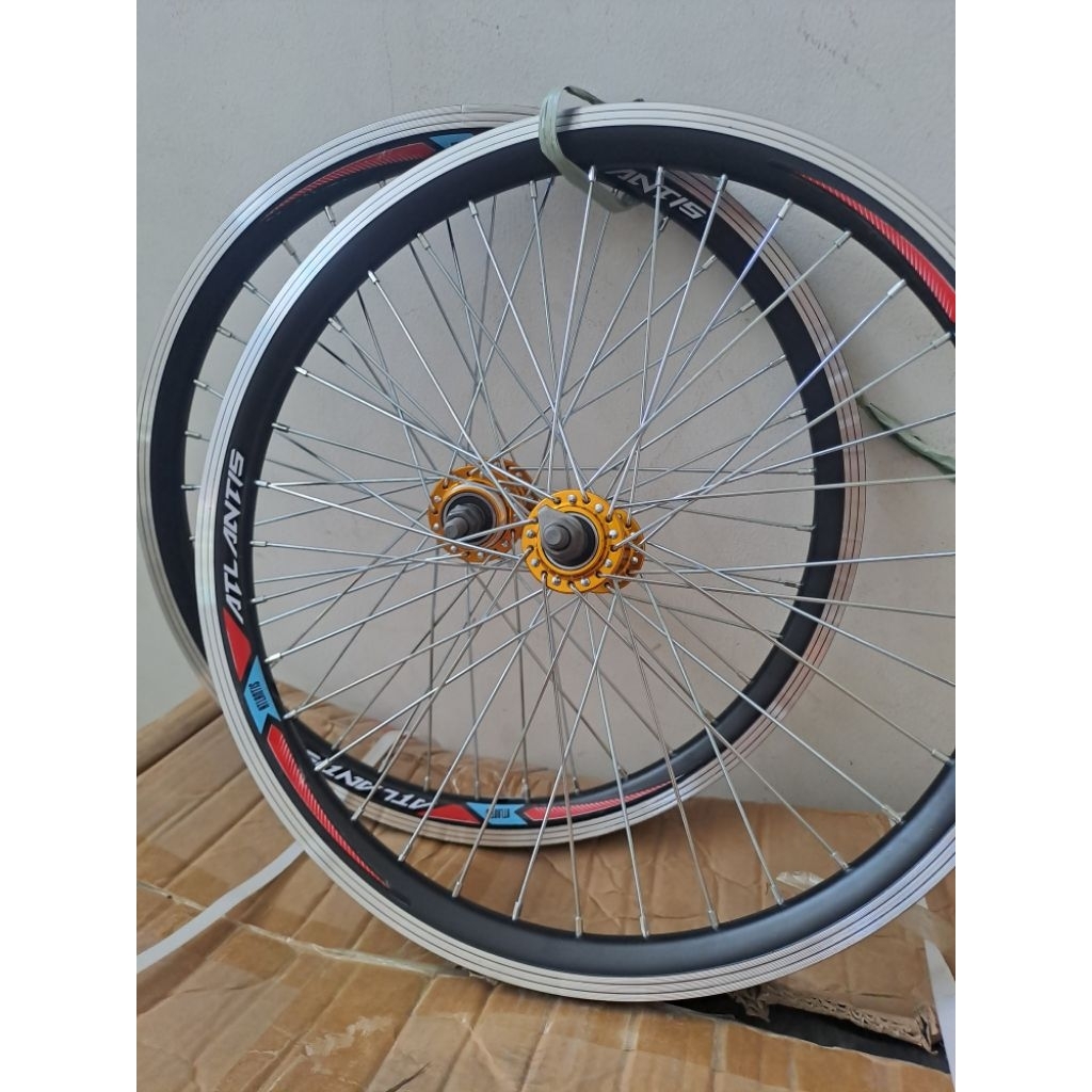 Set Wheelset Depan & Belakang 20 Double Wall Atlantis / Platinum Mata Ikan + Hub OXO / pacific 36 Hole + ruji Celcius