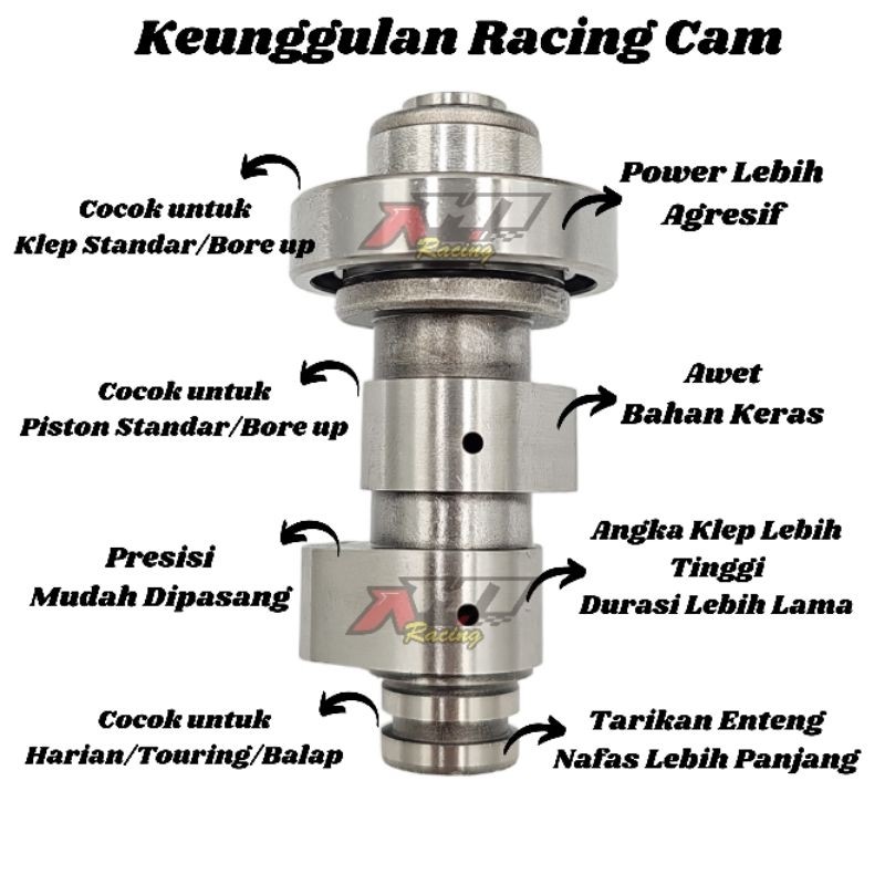 PAKET NOKEN AS CAM AH1 RACING RRA MIO SPORTY MIO SOUL MIO SMILE FINO KARBU PLUS RRA PELATUK ROLLER DAN PER KLEP - CAMSHA