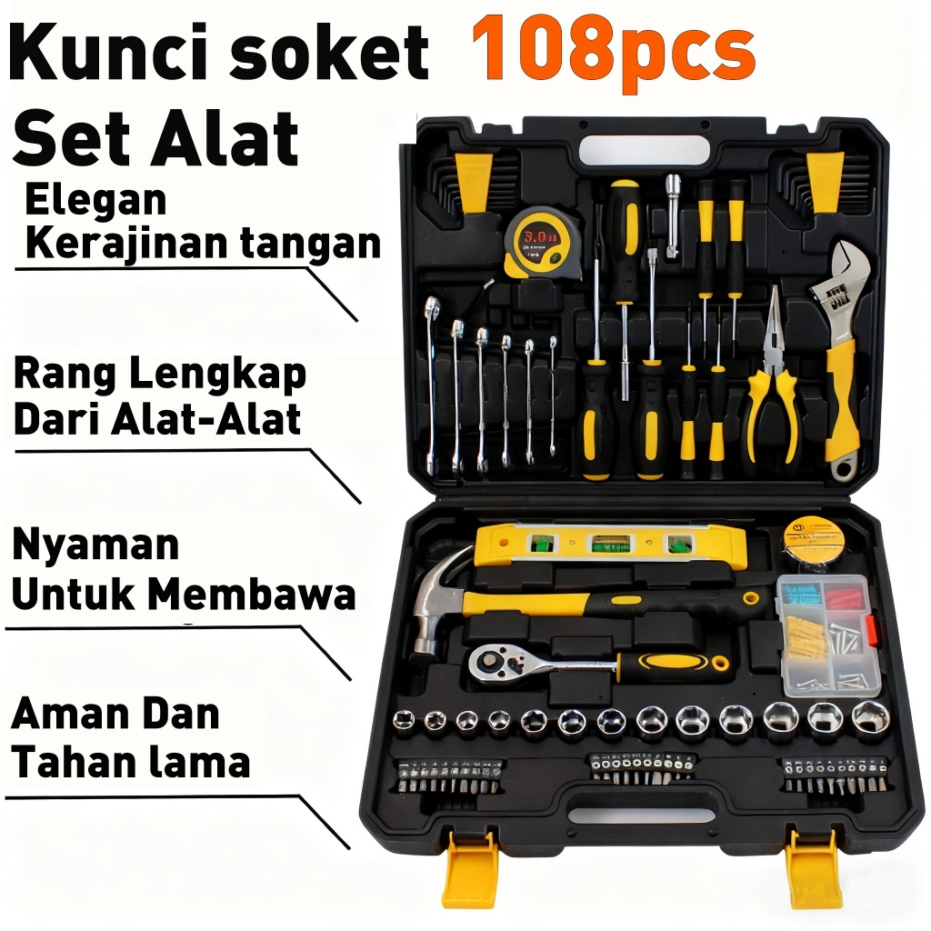 REAIM 108 PCS Set Kunci Lengkap Sok Kunci Shock Toolbox Set Home Tool Mobil Motor Lengkap Socket