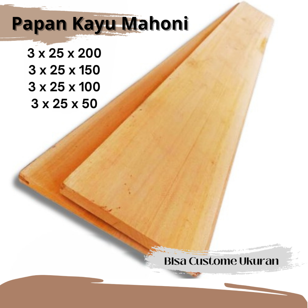 Papan Kayu Mahoni Serut Halus Ukuran 3 x 25 x 200 - 10 cm