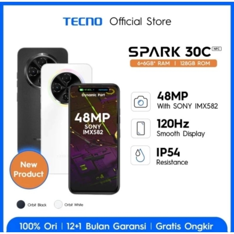 TECNO SPARK 30C RAM 6+6/128GB New Garansi Resmi