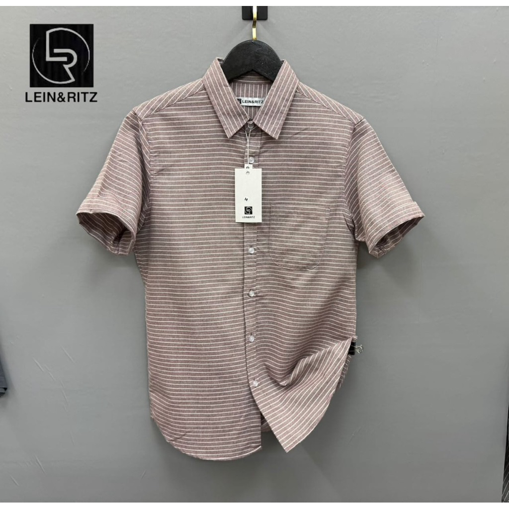 Lein&Ritz - Kemeja Pendek Kerah Salur Oxfort Premium - Kemeja Casual Pria Salur Slimfit