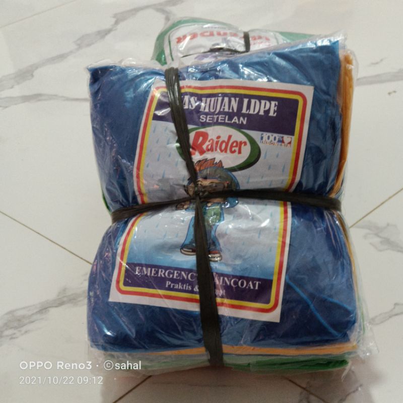 ISI 12 JAS HUJAN PLASTIK TEBAL LDPE MEREK RAIIDER MODEL SETELAN (BAJU CELANA)MADE IN INDONESIA