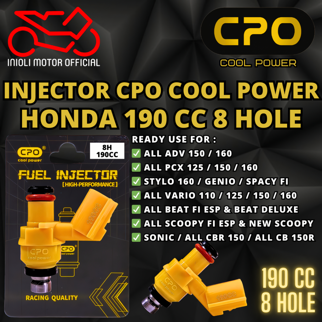 INJECTOR CPO COOL POWER 190CC 8 H0LE BEAT SCOOPY VARIO PCX ADV GENIO STYLO BEAT DELUXE SONIC CB CBR 150R CRF SUPRA GTR V