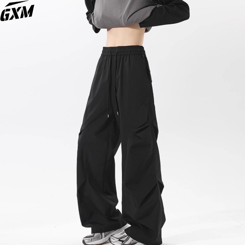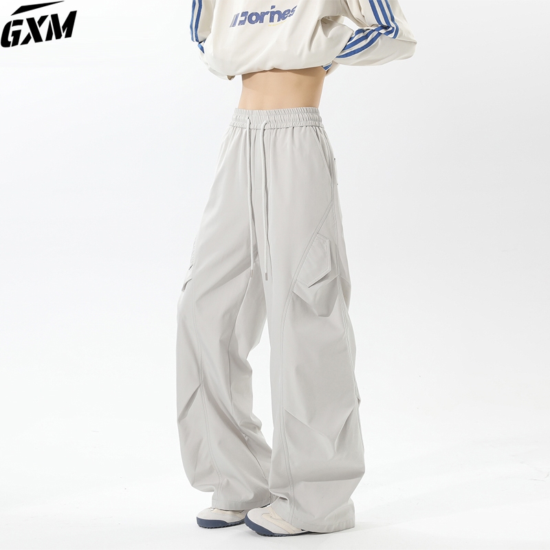 Celana Cargo Pria Panjang Loose Fit Korean Style baggy straight cargo pants dewasa pinggang karet casual pria Oversize K