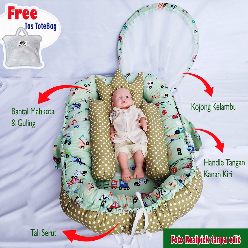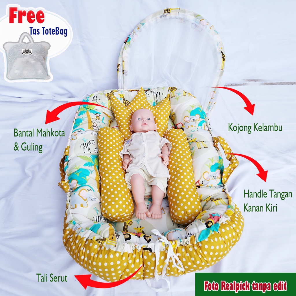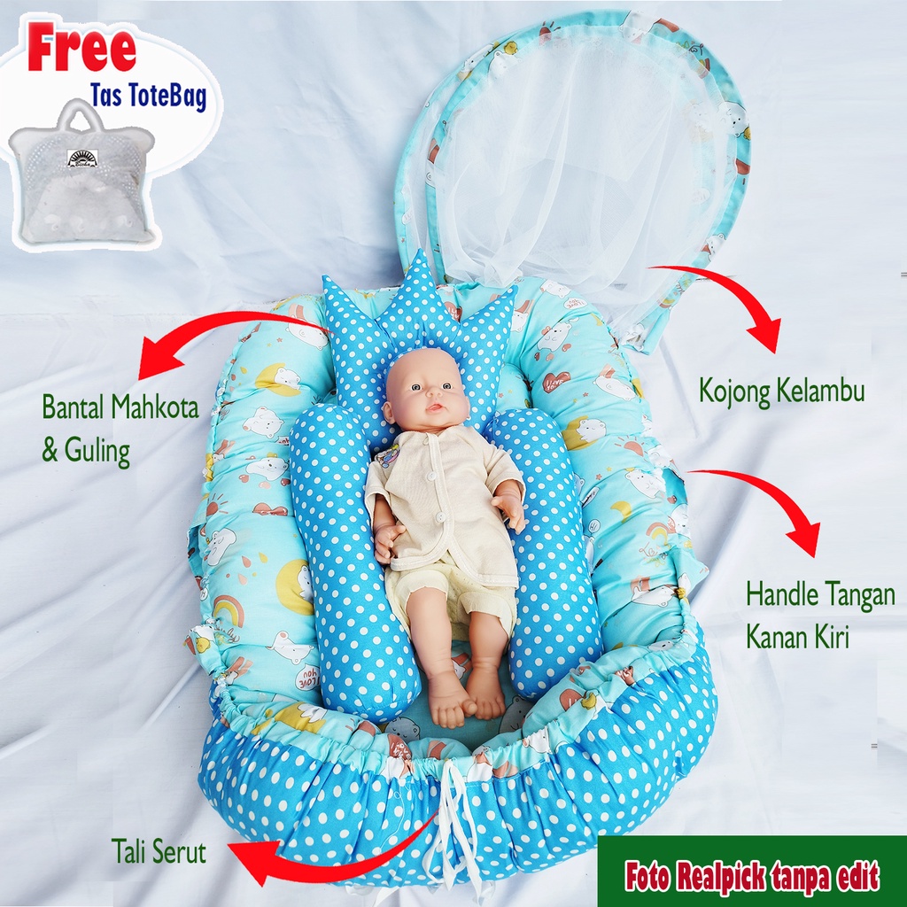 [FREE TAS TOTEBAG] KASUR BAYI BABY NEST PREMIUM DENGAN KELAMBU + FREE BANTAL PEYANG DAN GULING BAYI (BISA 2 SISI MOTIF B