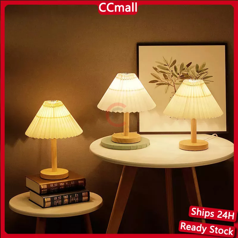 Lampu Tidur Led Wireless Remote Control 3 Color Lampu Wood Meja Hias Kain Led Lampu Vintage Gaya Jepang Lampu