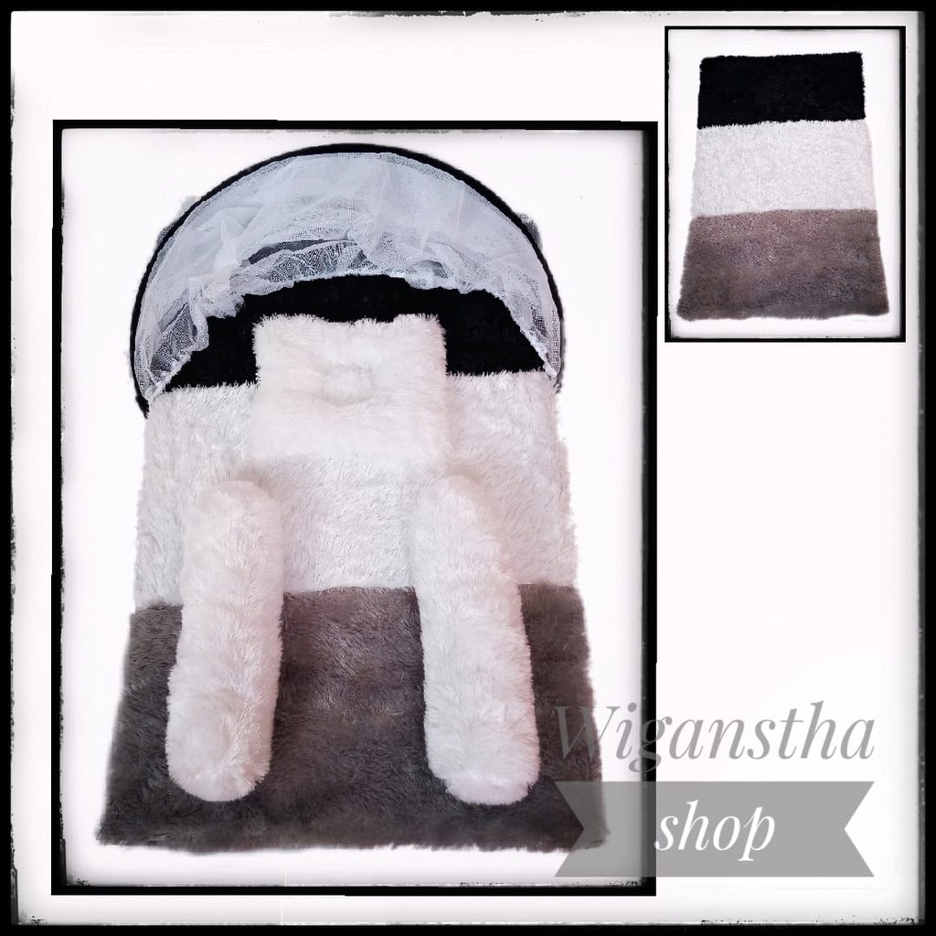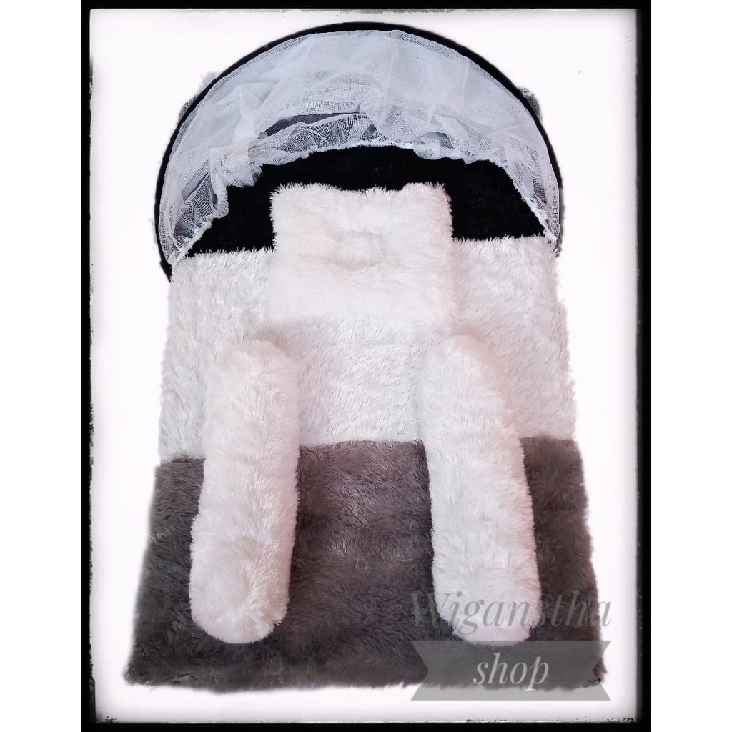 PROMOKASUR BAYI MATRAS KELAMBU BULU SATU SET BANTAL GULING MURAH/KASUR BAYI BULU MOTIF 3 WARNA/KASUR BAYI SURPET BULU