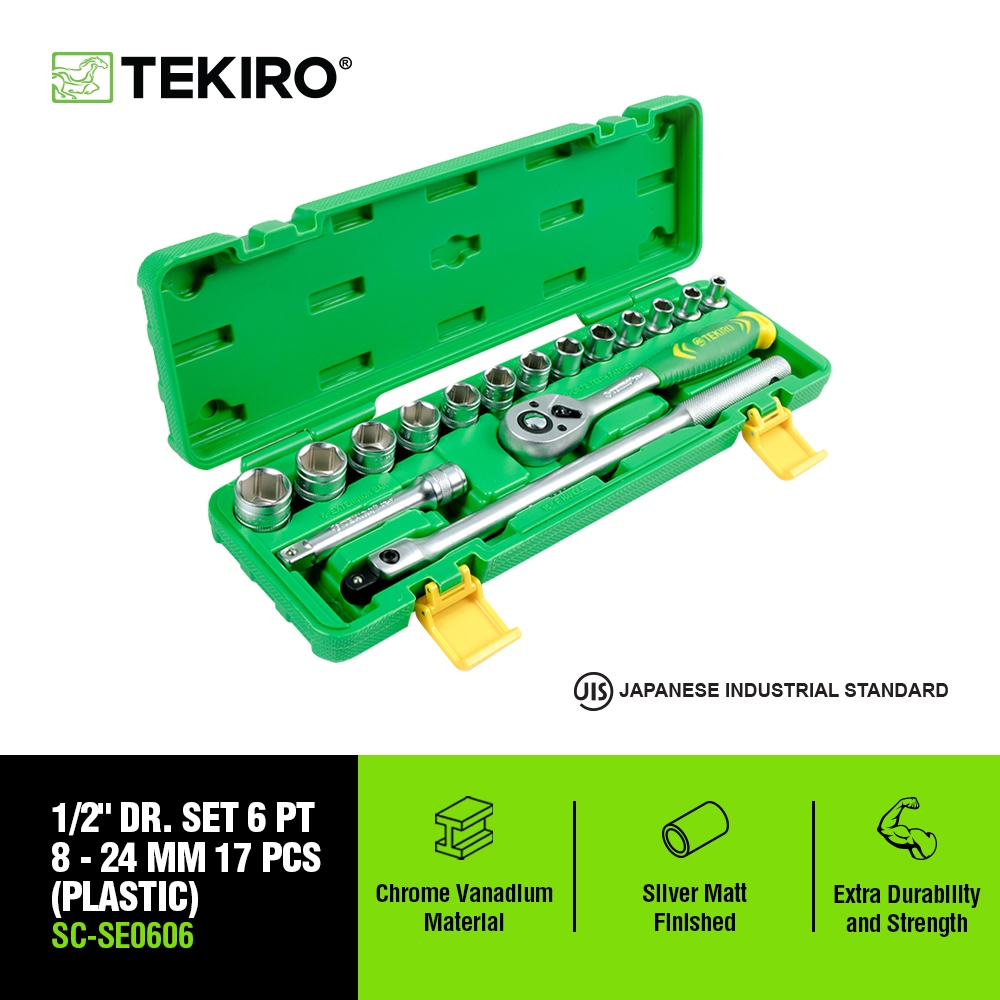 TEKIRO 1/2 INCH DR. SET 6 PT 8 - 24 MM (TB PLASTIK) 17 PCS - SOK SET 17 PCS - SOCKET - PERKAKAS