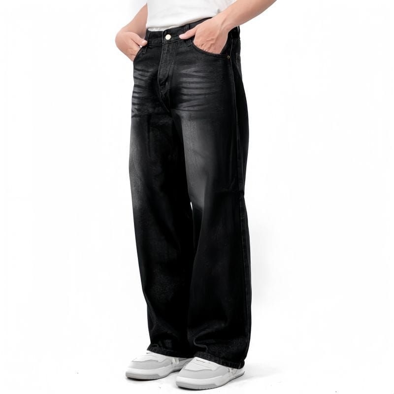 Celana Jeans Wide leg Wisker Lebar Gombrong Skena Black Wisker Pria Loose Fit jumbo big Baggy Skena
