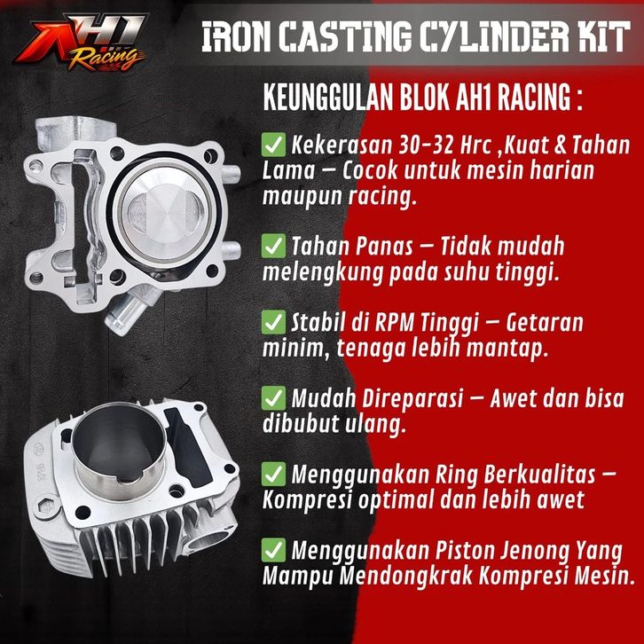 Blok Seher Bore Up AH1 Racing Set Komplit Jupiter MX, MX King, Vixion, R15 Old V2 Size 60-65mm
