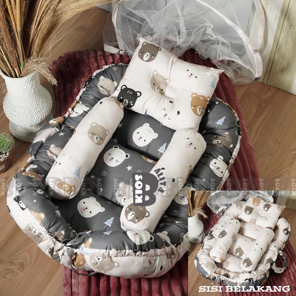 KASUR BAYI BABY NEST PREMIUM DENGAN KELAMBU + FREE BANTAL DAN GULING (BISA 2 SISI MOTIF BOLAK BALIK)