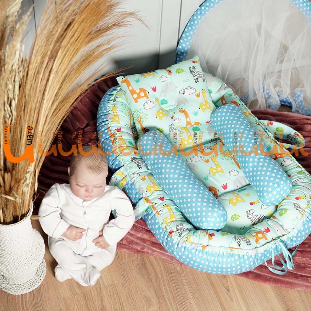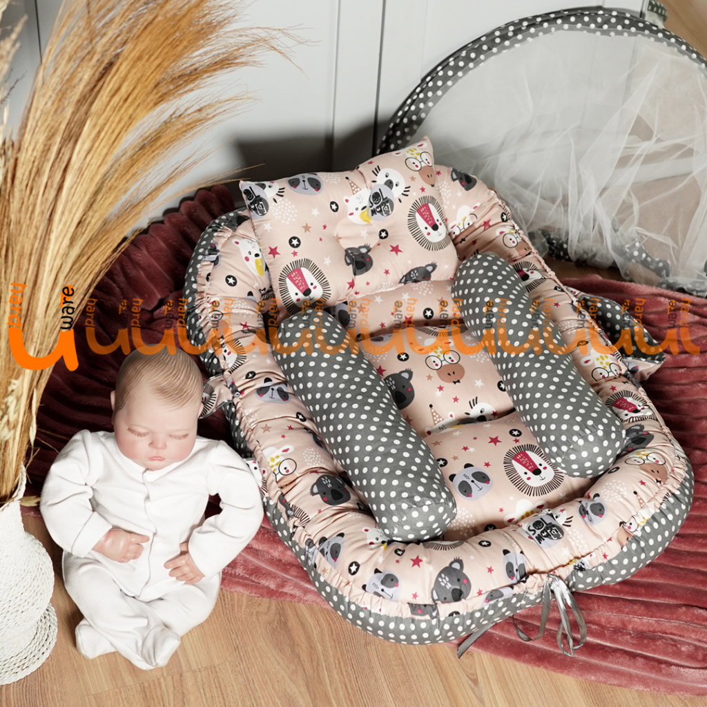 TERMURAH KASUR BAYI BABY NEST PREMIUM DENGAN KELAMBU + FREE BANTAL PEYANG DAN GULING BAYI (BISA 2 SISI MOTIF BOLAK BALIK