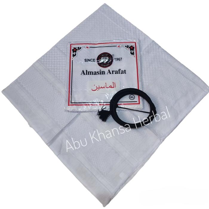PAKET SORBAN ALMAS ARAFAT PUTIH POLOS PLUS IGAL PENGIKAT KEPALA IMAMAH