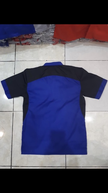 Baju kerja pria hitam kombinasi merah - seragam kerja pria dril - baju bengkel - seragam teknik