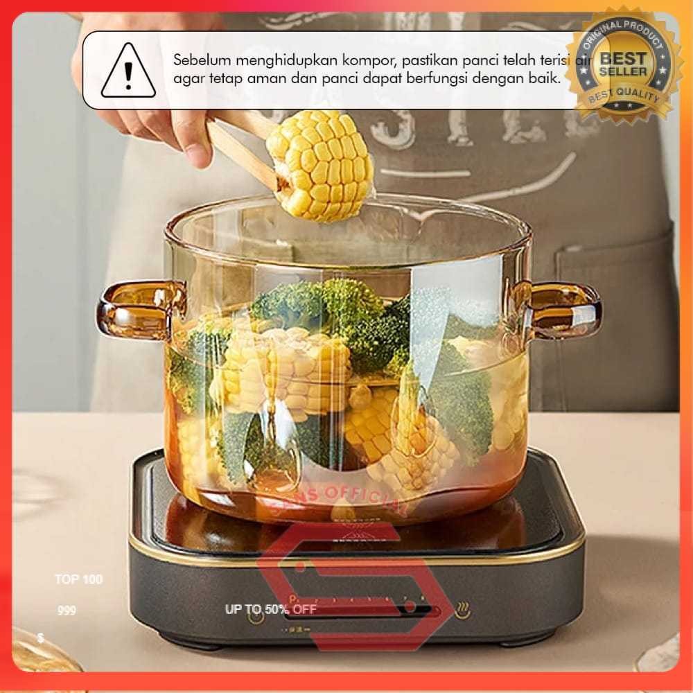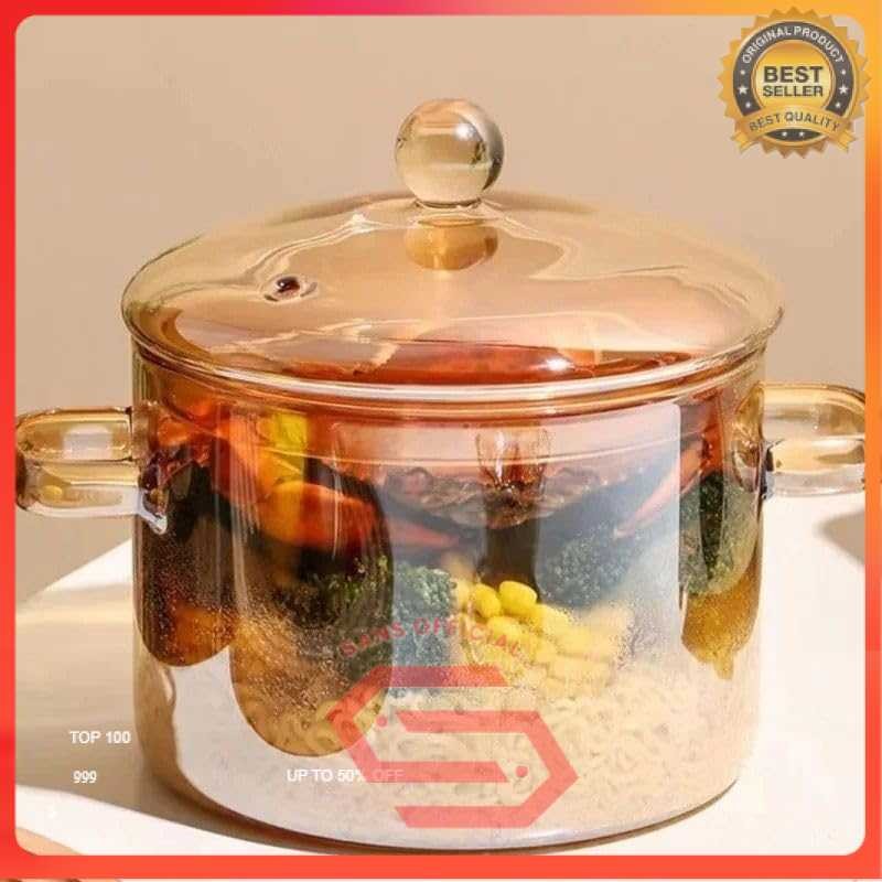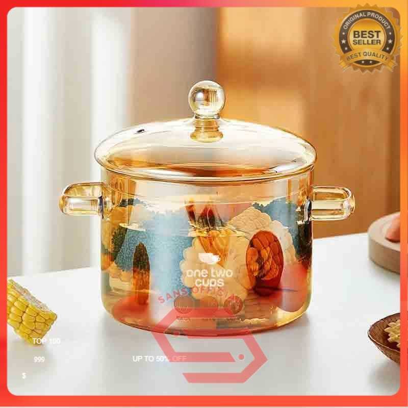 Panci Kaca Glass Cooking Pot Borosilicate Tahan Panas Api Ukuran 15 dan 16 cm - YWJ-1265 SANS