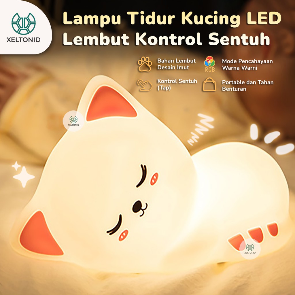 Lampu Tidur Silikon Sensor Sentuh Kucing Night Light Silicone Cat Lamp