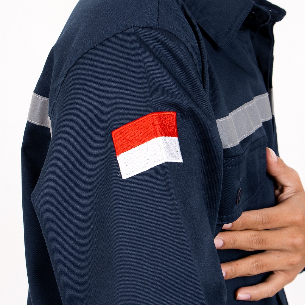 Baju Proyek Biru Dongker Navy Kemeja Bengkel Mekanik Teknisi Kerja Teknik Tambang Wearpack Sefty K3 Seragam Lapangan Produk Original Jahitind