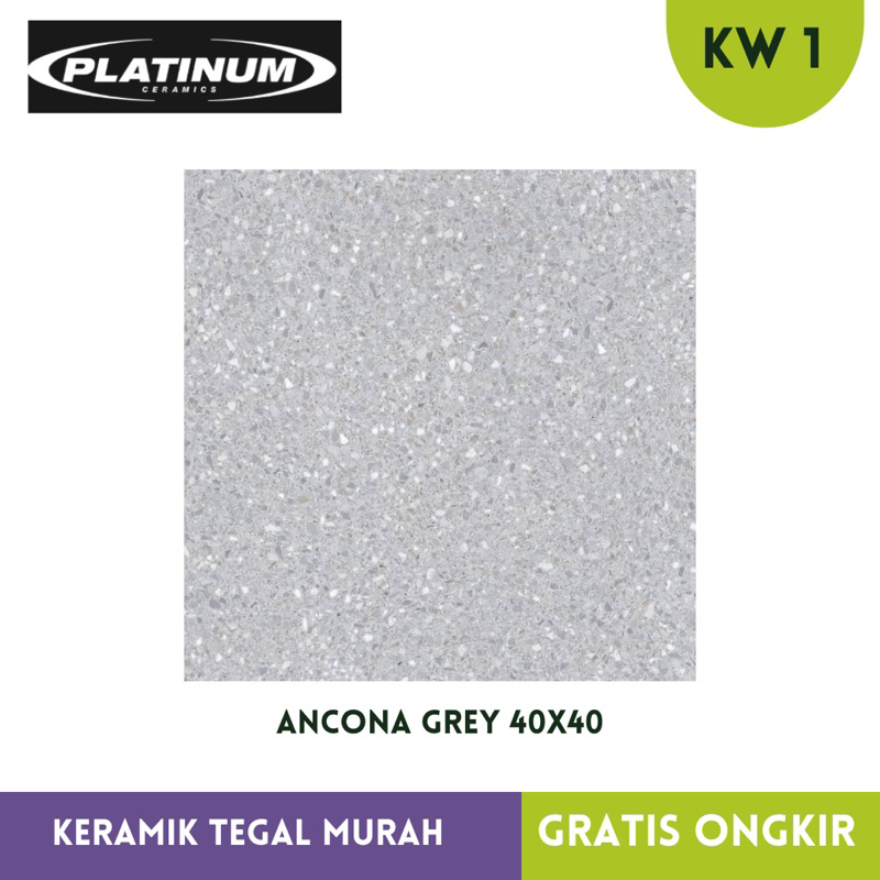Keramik Teras / Kamar mandi motif teraso 40x40 Platinum Ancona Grey anti slip KW1 Terjamin