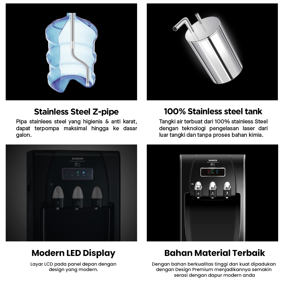 Sanken Dispenser Galon Bawah HWD-C523IC Hitam Bottom Loading