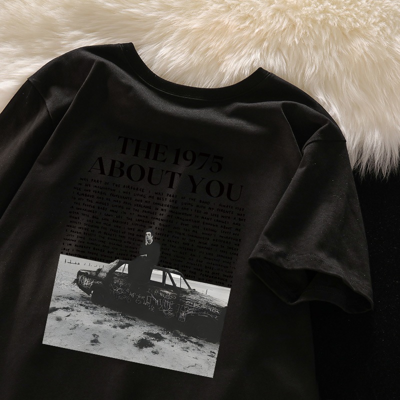 Po floret t shirt oversize lengan pendek Kaos The 1975 ABOUT YOU katun murni Retro style wanita top