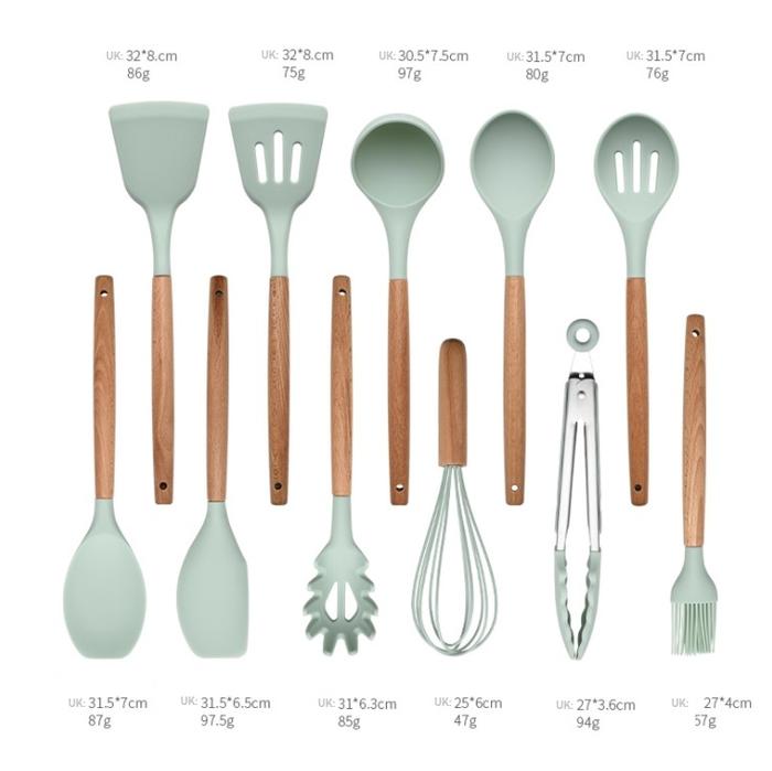 SPATULA SILIKON TAHAN PANAS 13IN1 SPATULA SET PERALATAN MASAK SILICON - PINK