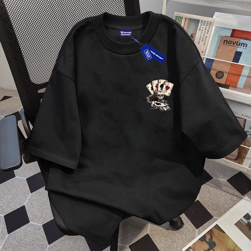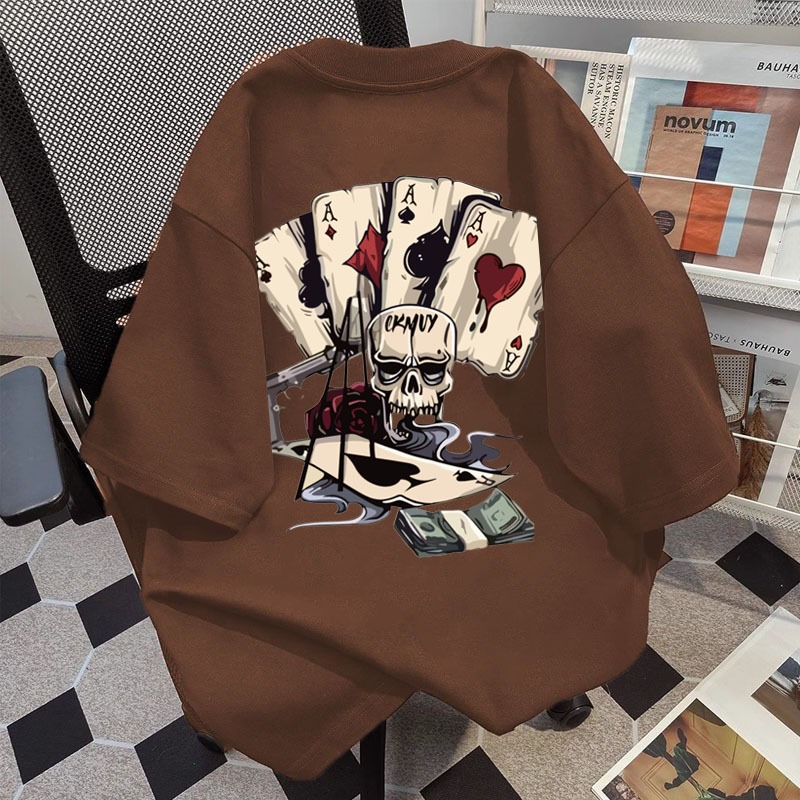BOOMBAP American retro Style T-shirt Oversize Tengkorak Poker Print top| Kaos Wanita Putih | Kaos pria dan wanita | Stre