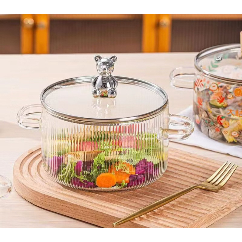 (packingan free bubble wrap) Panci Soup Rebus Kaca Tebal Glass Cooking Soup Pot Transparan