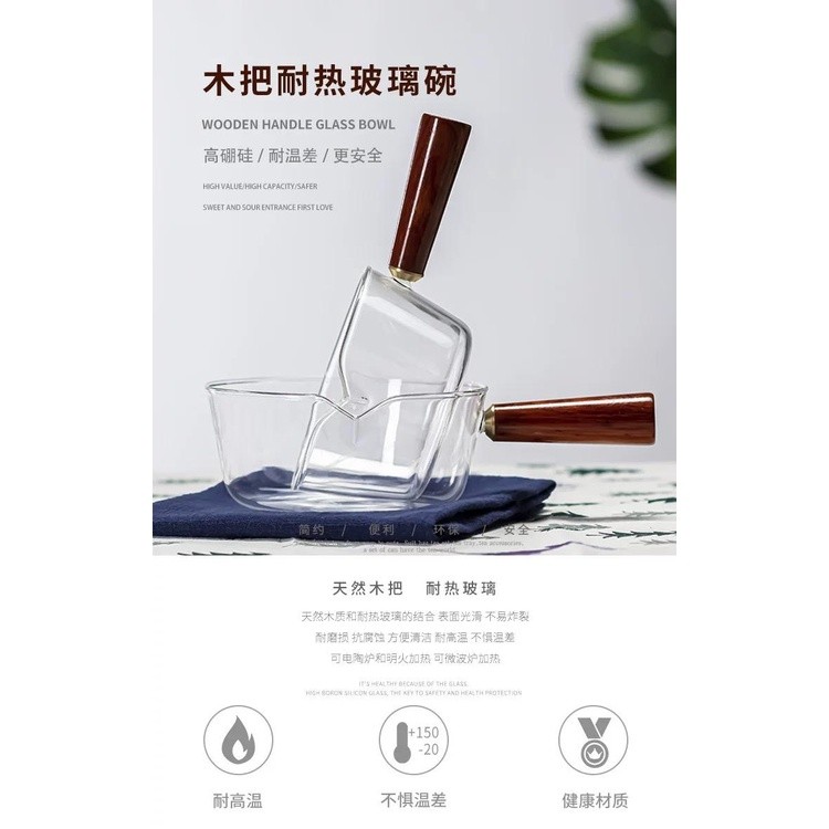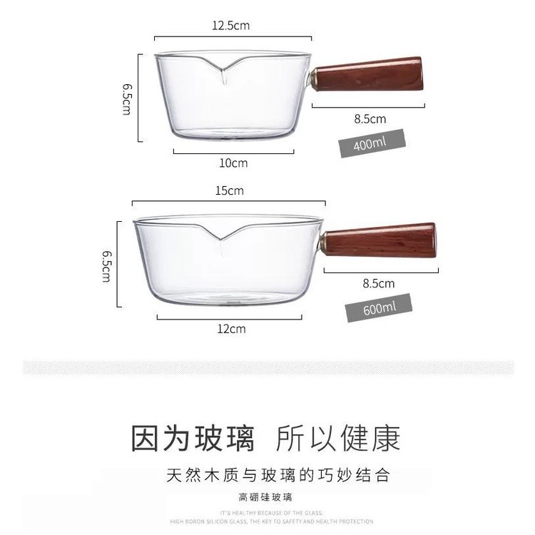 WINS Panci Masak Kaca Transparan Tahan Panas dengan Handel Kayu Cooking Pot Wooden Handle