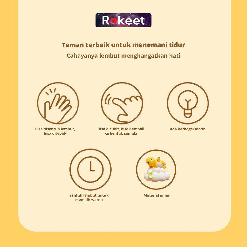 Rokeet Night Lamp Led Nailong Dino Kuning Cute Lampu Tidur Malam Dekorasi Kamar Hias