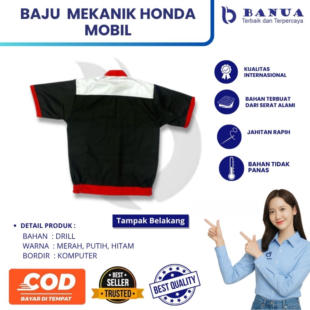 Baju Standar Mekanik Honda Mobil New | Wearpack Honda Merah Hitam | Seragam Bengkel Honda