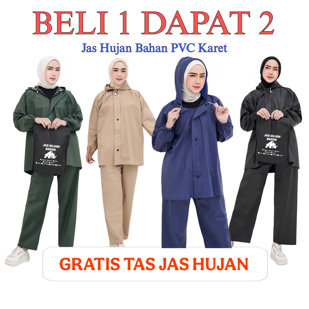 [BAYAR 1 DAPAT 2] JAS HUJAN RAINCOAT, MURAH PRIA WANITA SETELAN BAJU CELANA ANTI REMBES BY BADAK