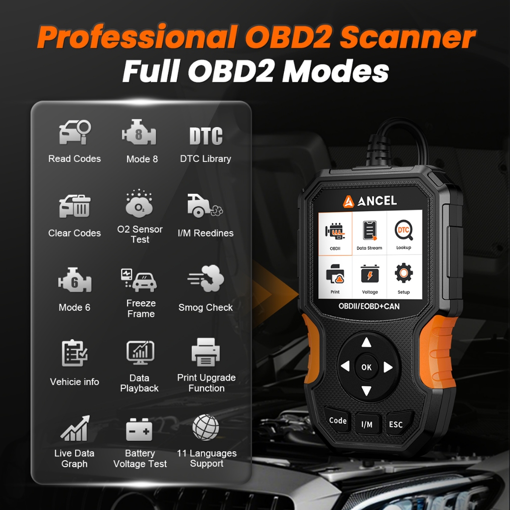 ANCEL AS300 OBD2 Scanner Mobil Universal Pembaca Kode Kesalahan Hapus Alat Diagnostik Cahaya Mesin Periksa, Automotive F