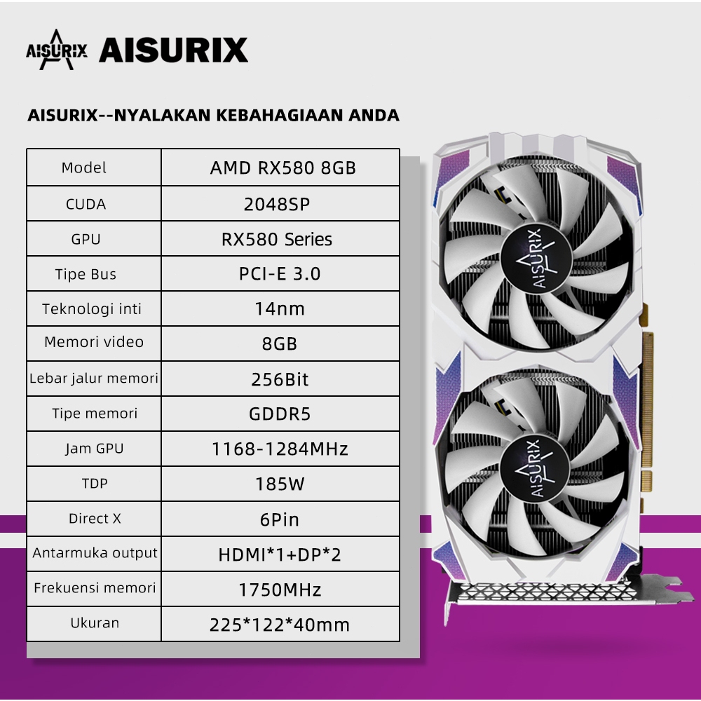 AISURIX RX580 8GB Batu ruby VGA card GDDR5 HDMI 256BIT 2048SP RX580 VGA
