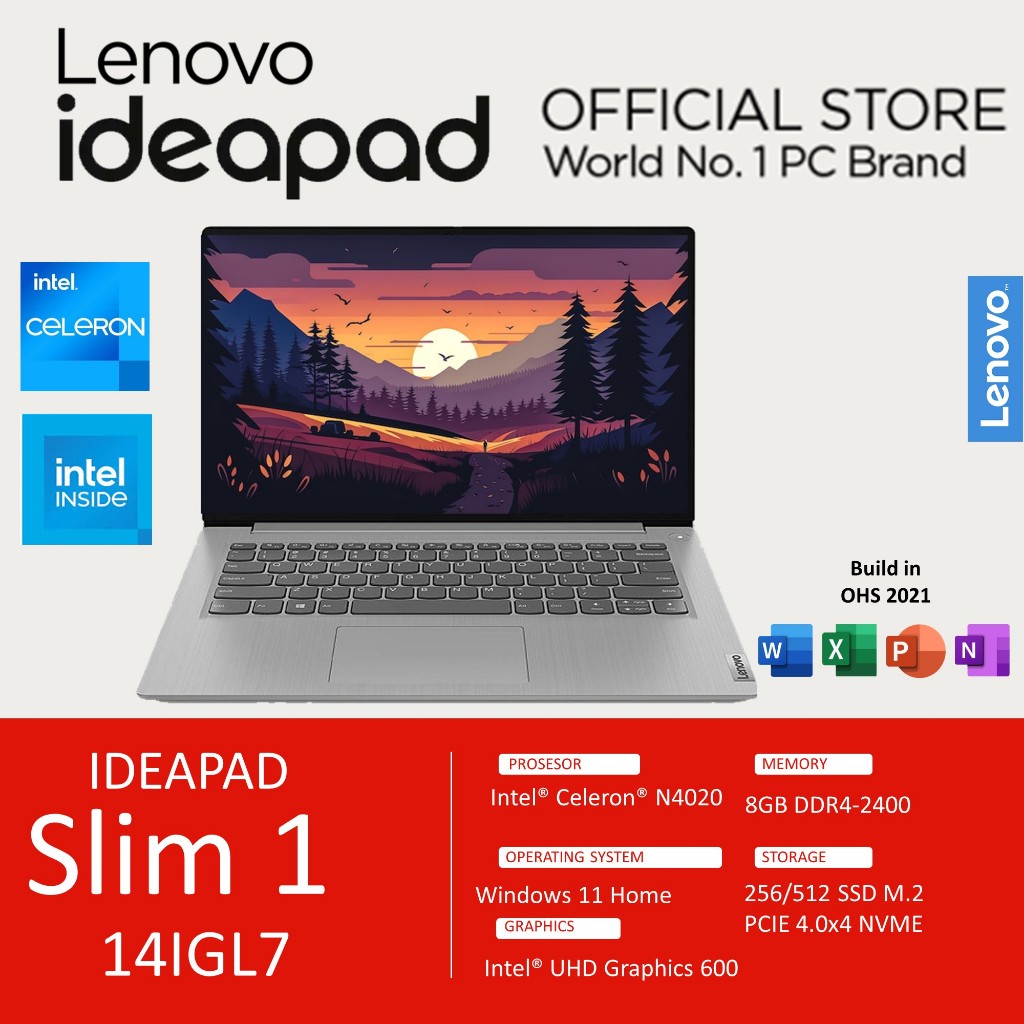 LENOVO IDEAPAD SLIM 1 14 N4500 8GB 256GB/512GB W11+OHS 14.0 2Y PREM GRY -9PID
