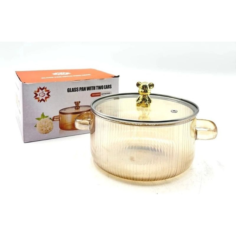 Panci kaca masak tahan panas stewing soup pot transparan/panci kaca viral/panci SOP kuping kaca borosilikat anti panas/Glass Coocking Soup Pot