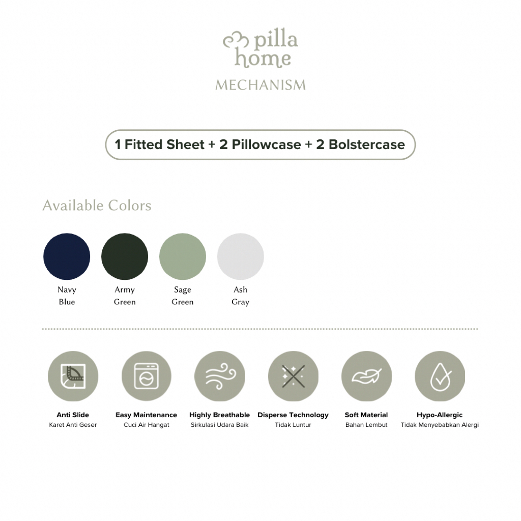 Pilla Home Sprei Set 180X200 Mechanism Seprei Polos Aesthetic Single | Halus Katun Homemade Anti Geser Seprai Estetik 18