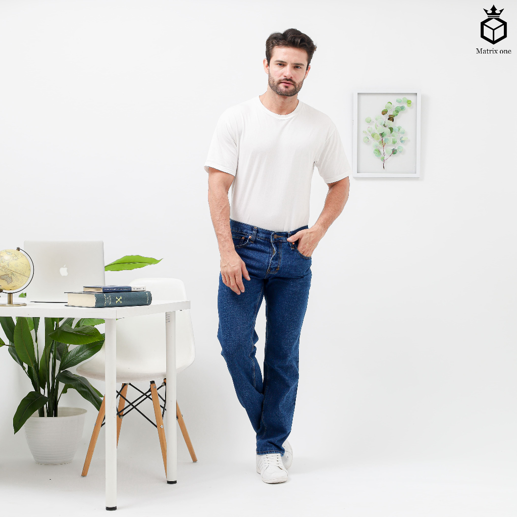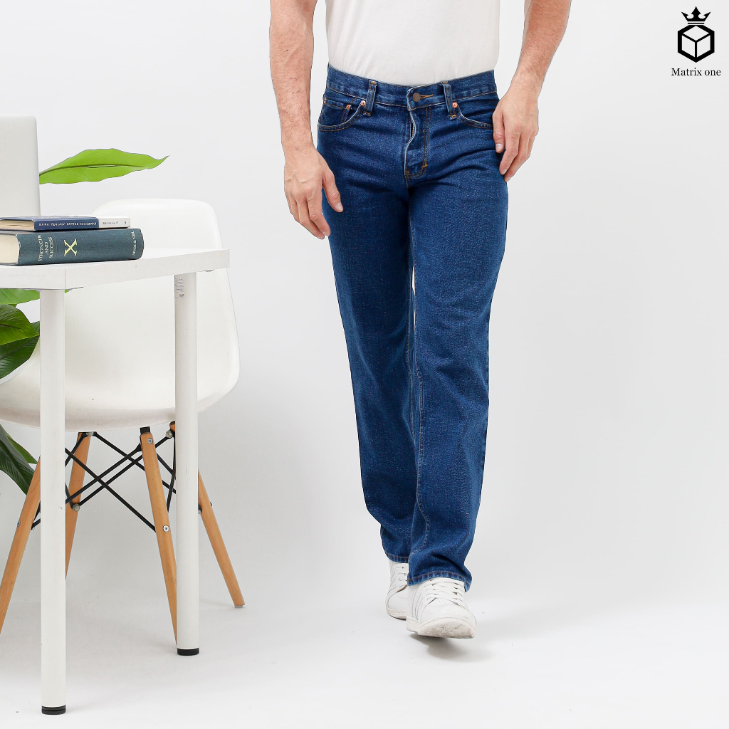 Celana Jeans Pria Standart Reguler Denim Biru Dongker Jumbo Size 28-46 Celana Panjang Pria