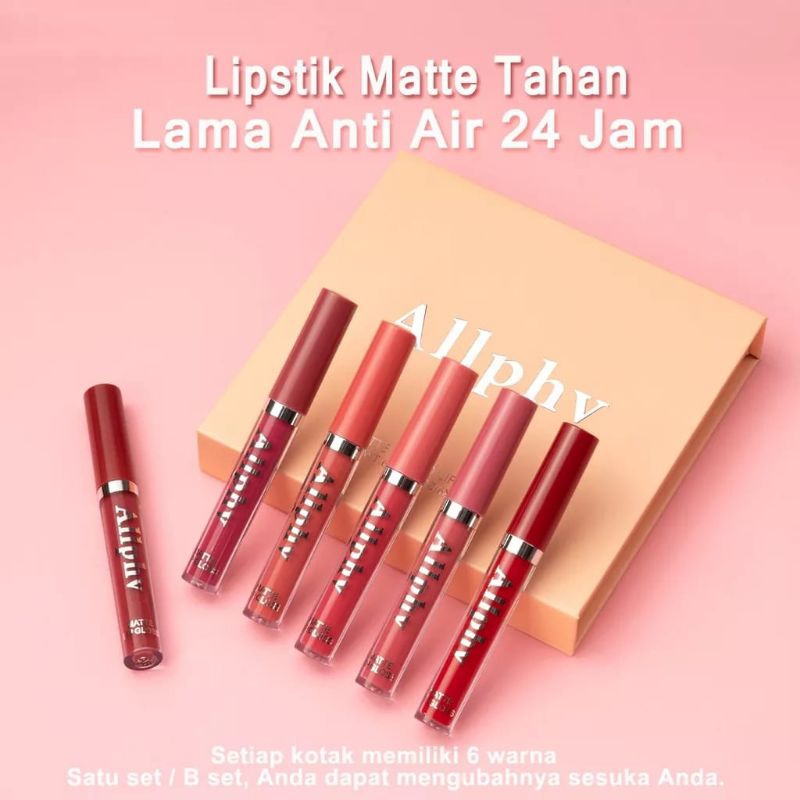 Allphv Lipstik Matte Longlasting Waterproof Non-Stick Cup Lipstick Velvet Matte Makeup Set 6pcs Bibir Lembut Tahan Lama