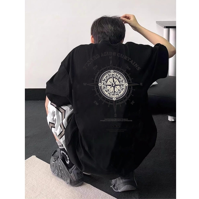 AUZY retro Amerika Mode kompas kaos pria wanita T-shirt baju oversize t shirt distro 7.10