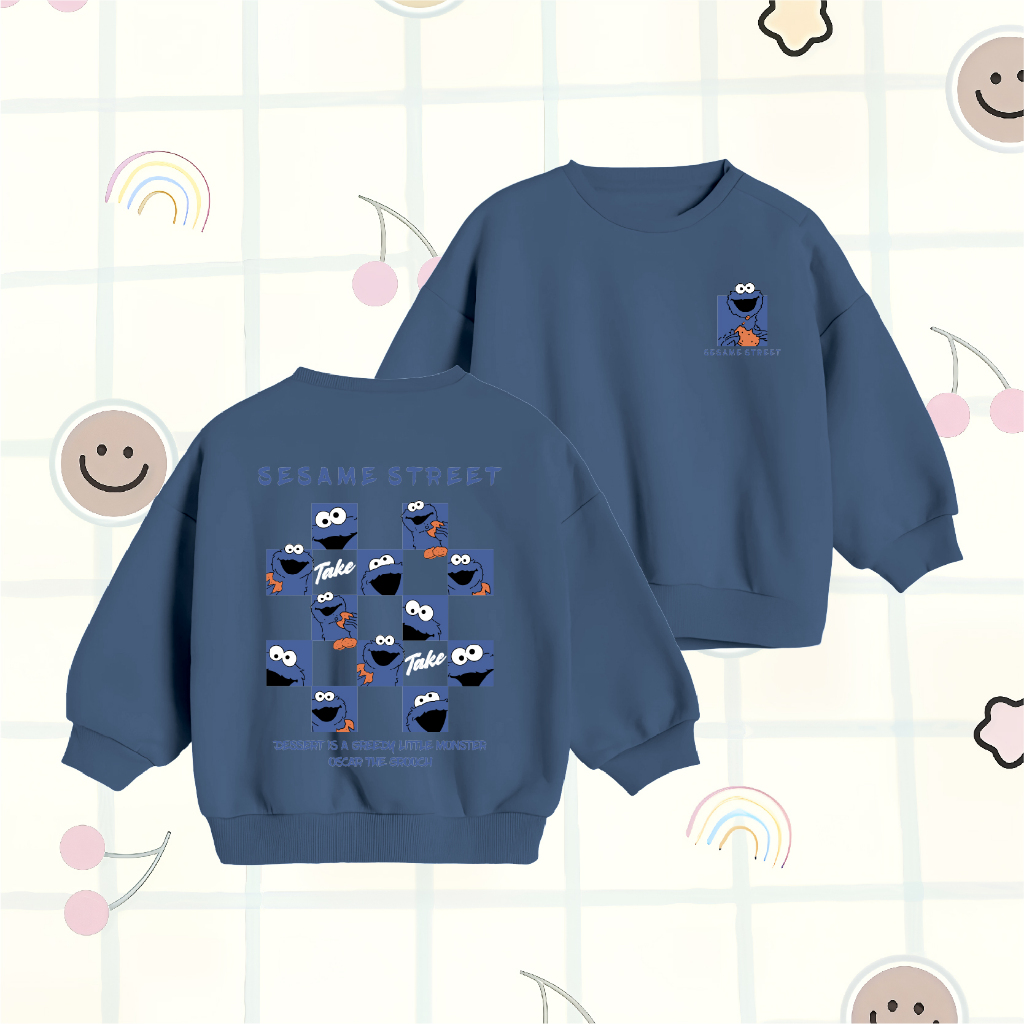 Sweater Anak Laki Laki WGUD'S KIDS Crewneck Sweater Basic Anak Sesame Monster Umur 4-15 Tahun Unisex Laki-Laki & Perempu