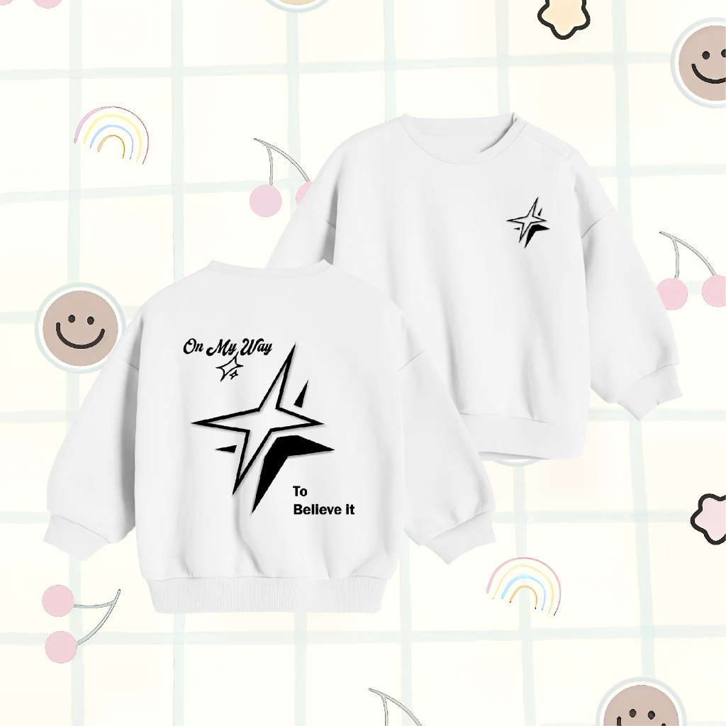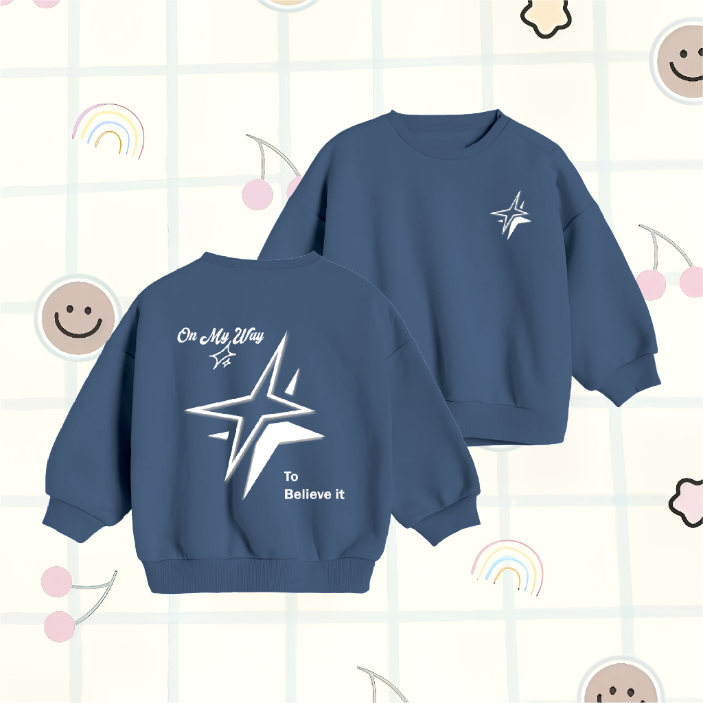Sweater Anak Laki Laki WGUD'S KIDS Crewneck Sweater Basic Anak On My Way Umur 4-15 Tahun Unisex Laki-Laki & Perempuan
