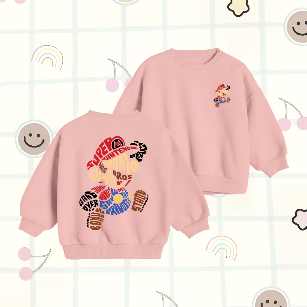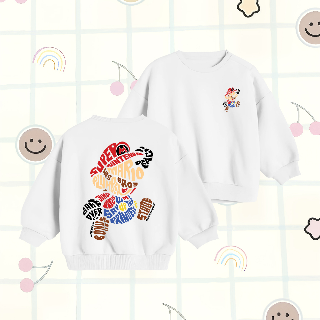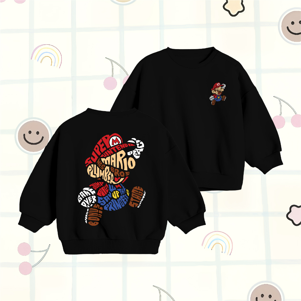Sweater Anak Laki Laki WGUD'S KIDS Crewneck Sweater Basic Anak Super Mario Plumber Umur 4-15 Tahun Unisex Laki-Laki & Pe
