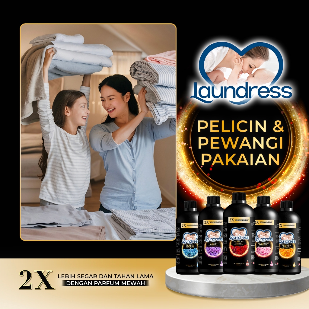 LAUNDRESS LUXURY Pewangi Pelembut Pelicin Setrika Pakaian Anti Bakteri Refill Botol 1 Liter 2 pcs