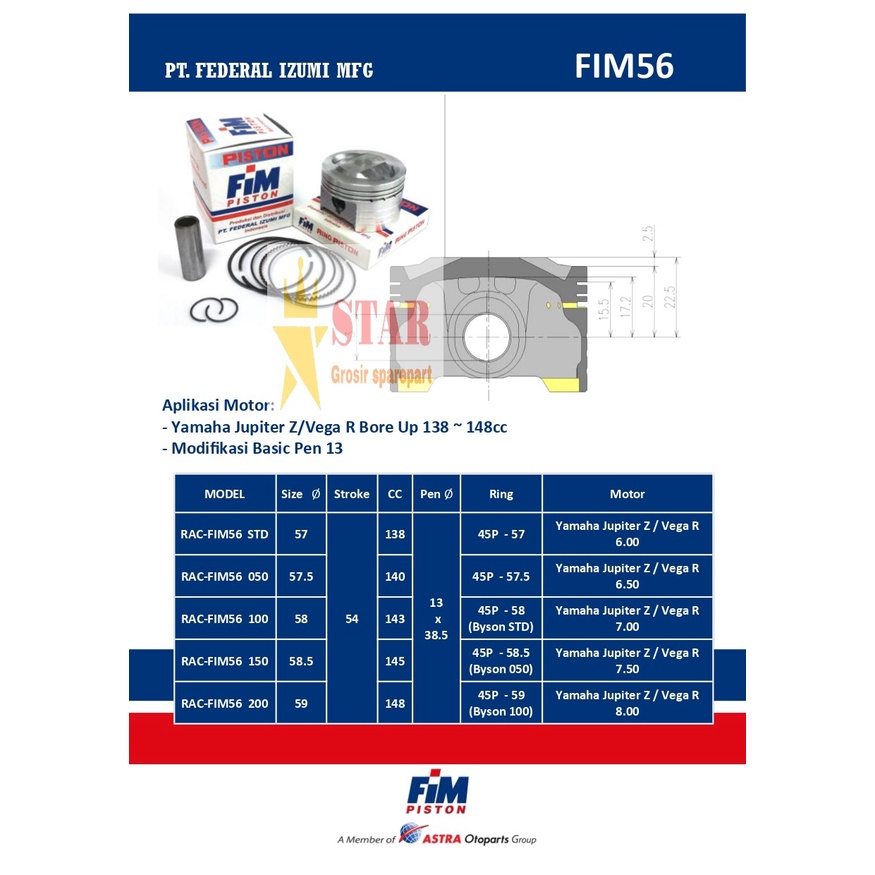 PROMO PISTON KIT JUPITER Z XB JENONG/BIG BORE FIM PEN 13 53,5mm s/d 59mm
