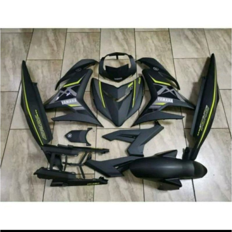 COVER BODY HALUS FULL SET + STRIPING YAMAHA MX KING 150 HITAM DOFF ORIGINAL YGP