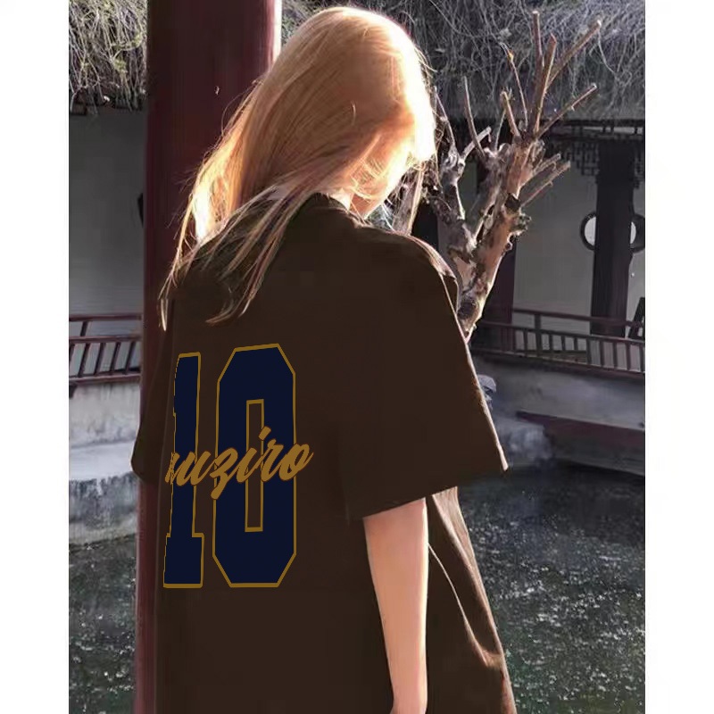 Po floret t shirt oversize lengan pendek Kaos Street retro numbers katun murni retro style wanita top