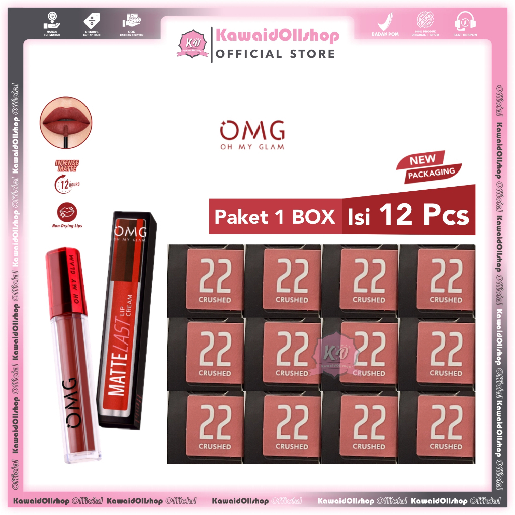 OMG Oh My Glam [BOX] Mattelast Lip Cream / Lipstick Paket 1 Box Isi 12 Pcs | Tahan Lama /Lusin (OMG LUSINAN)