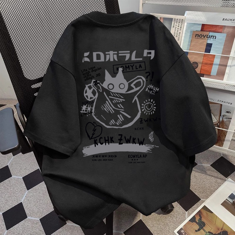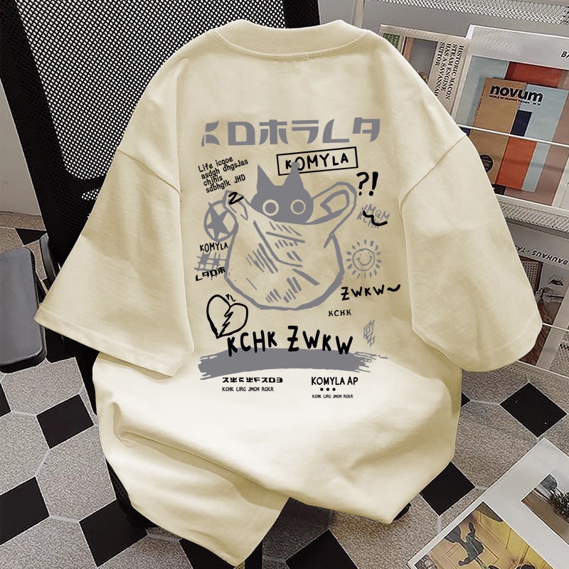 BOOMBAP American retro Style T-shirt Oversize Kucing Saku Print top| Kaos Wanita Putih | Kaos pria dan wanita | Street S
